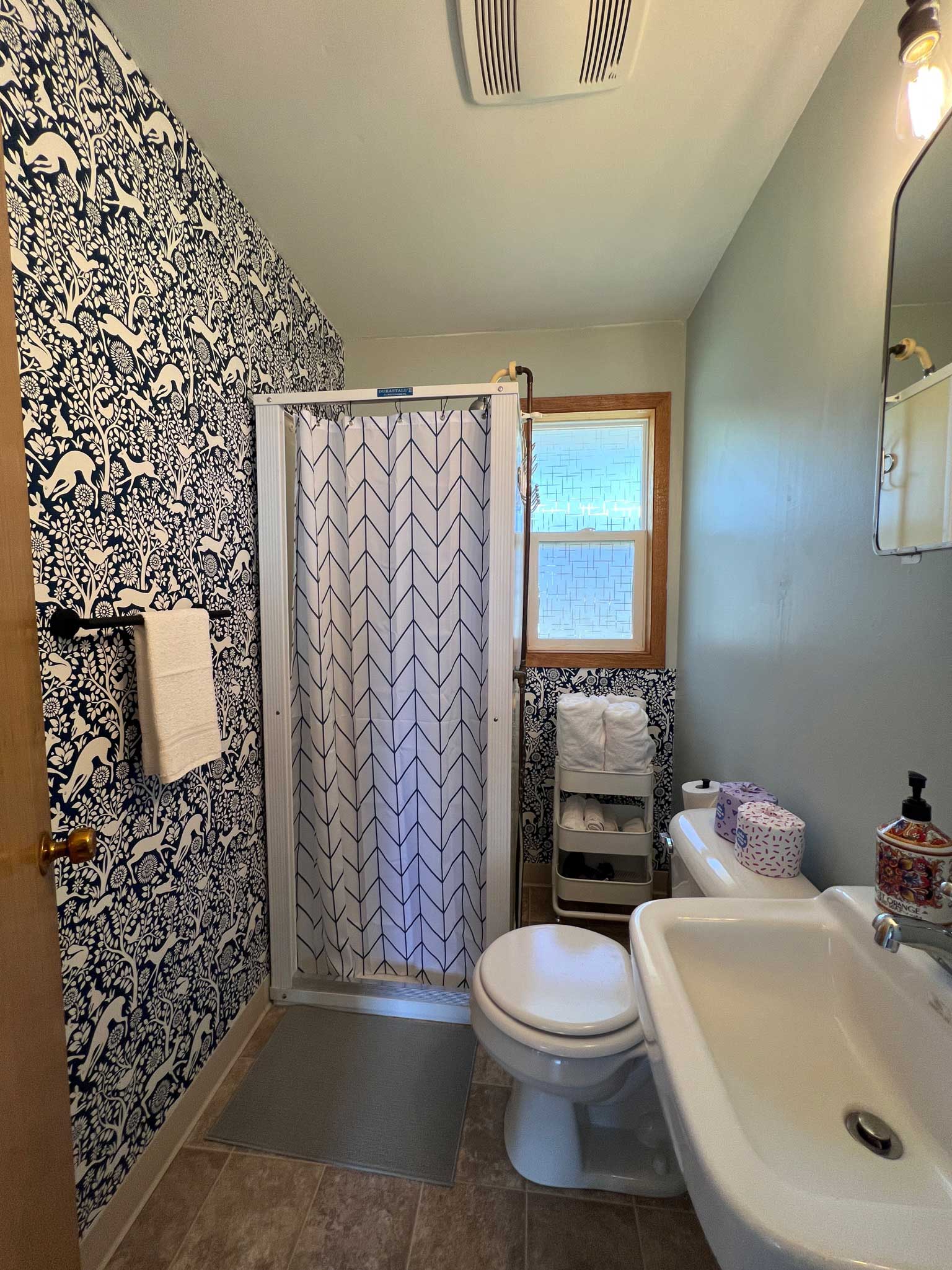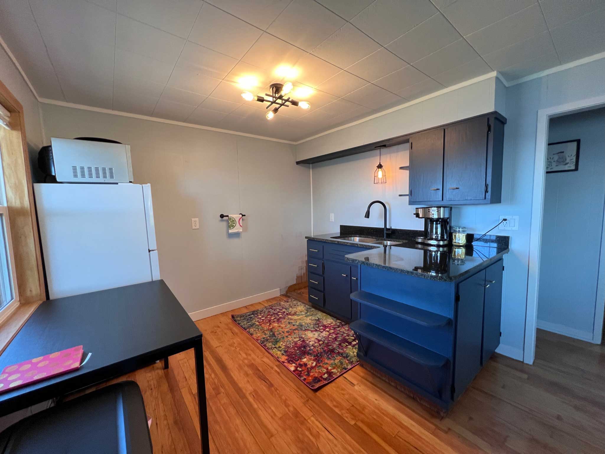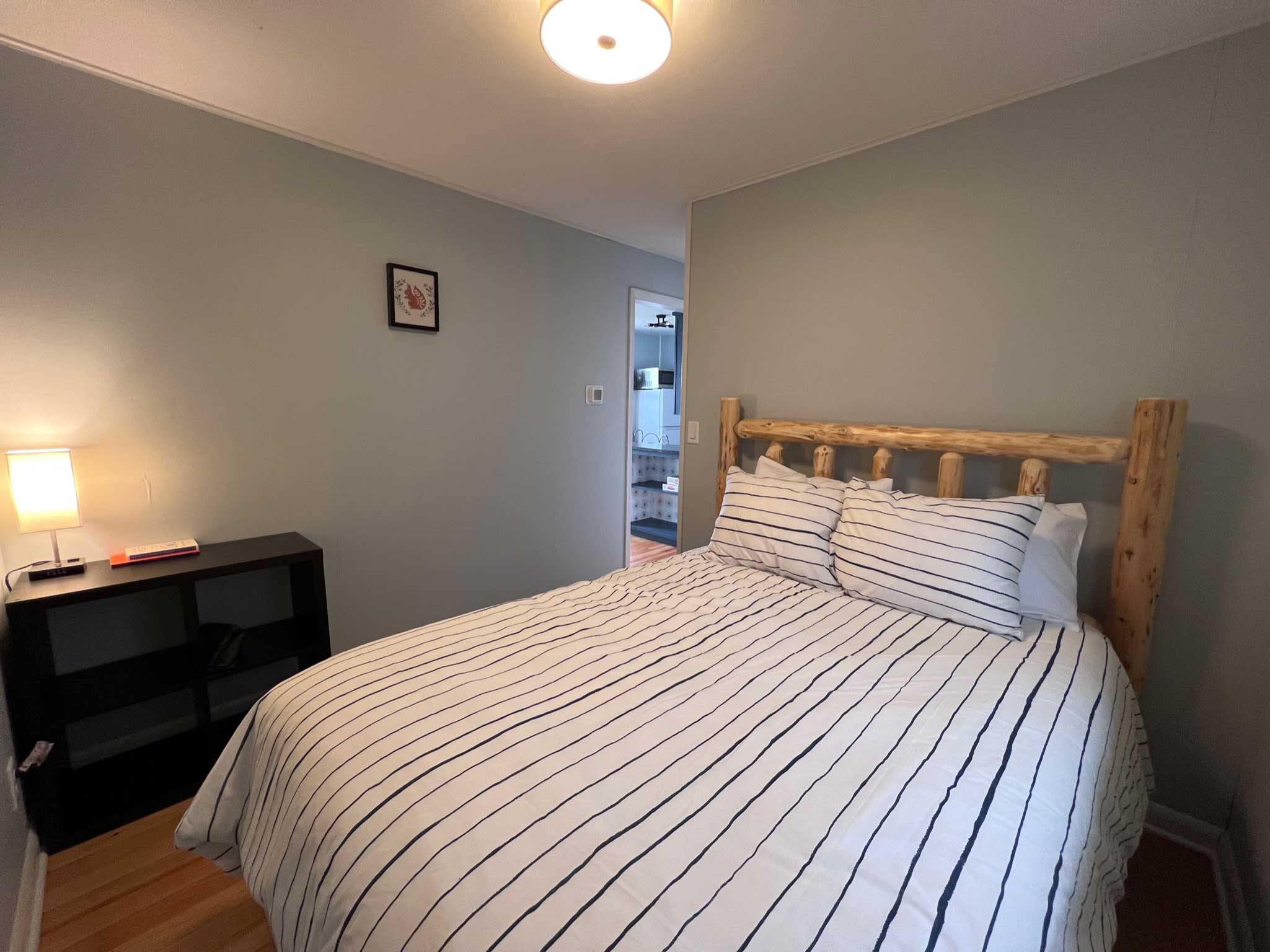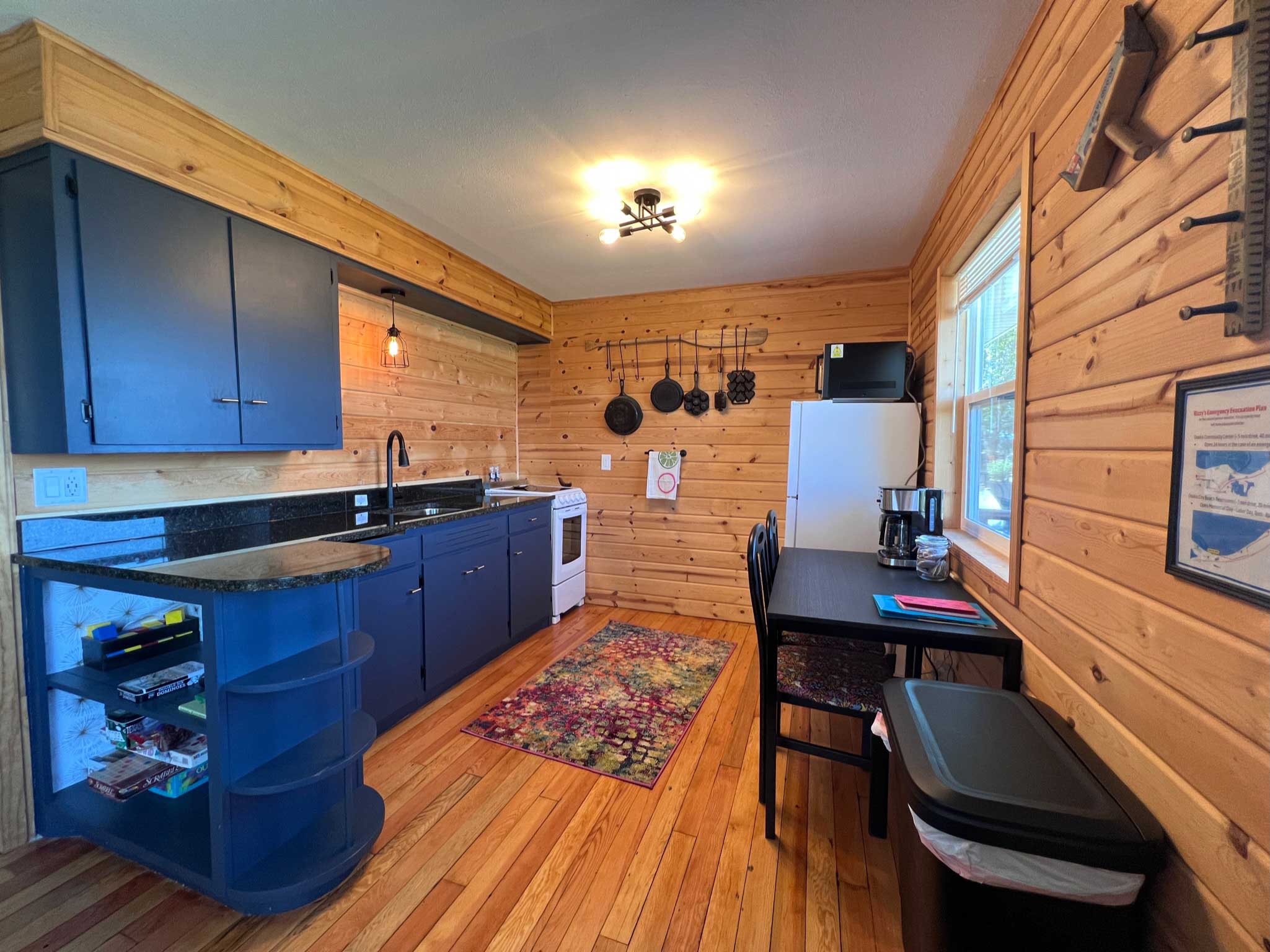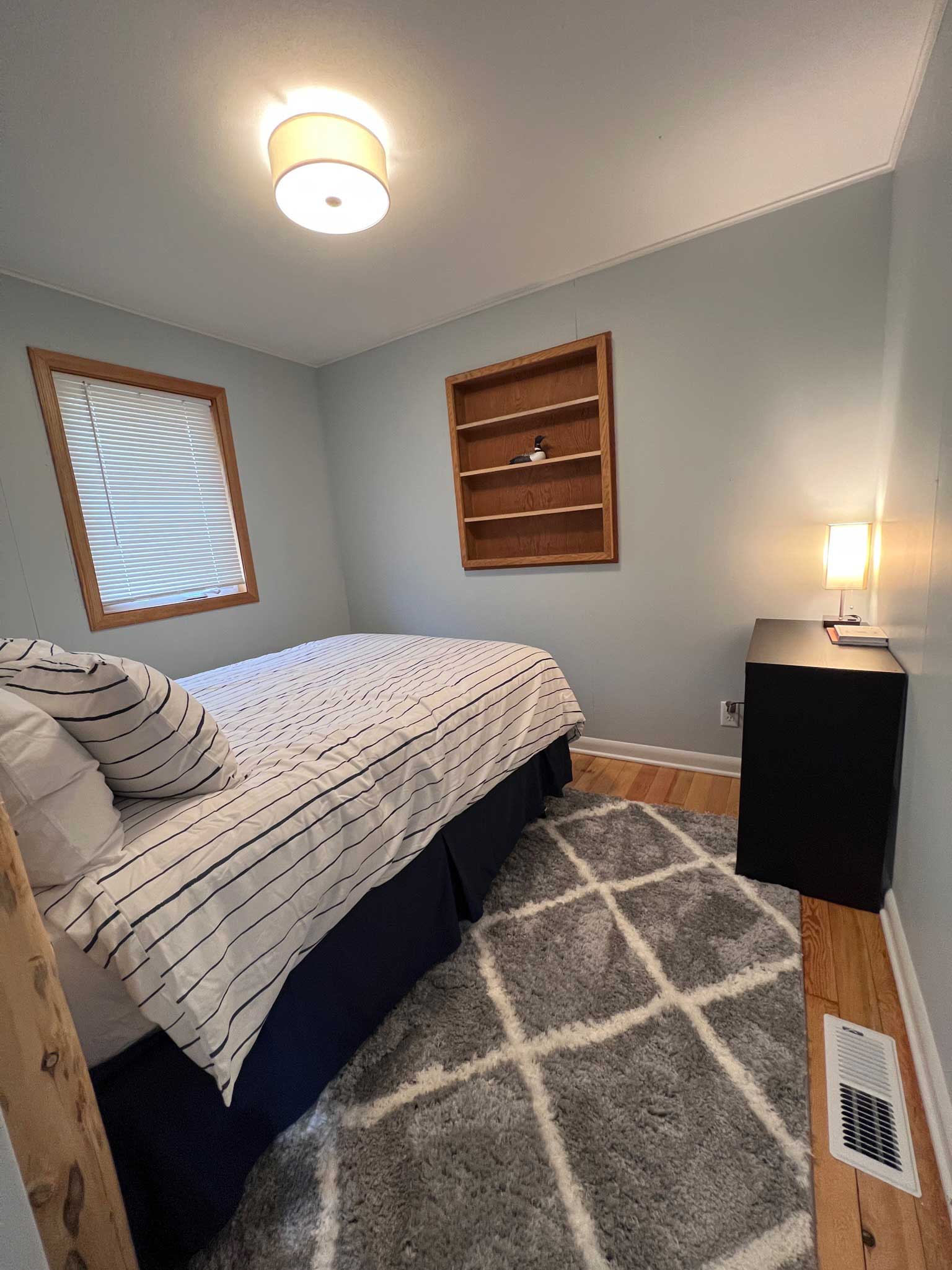Oland Villa, named after a small island and province just off the southeast coast of Sweden, is a two-bedroom, one-bath, dog-friendly unit offering a single full bed in one room and twin bunks in the other. The living room has a pullout sofa for additional sleeping space.